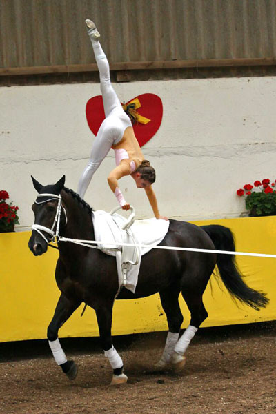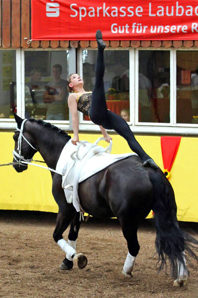 Dass die Voltis bei unserem diesjährigen Sommerfest nicht mit einer Aufführung dabei sein konnten, hatte einen guten Grund: An diesem Wochenende fand in Hungen auch die Hessenmeisterschaft im Voltigieren statt. Mit Longenführerin Nina Gröhl und auf dem Rücken von Giorgio Armani gingen Fiona Petters (LK M/S) und Jill Frey (Junior) im Einzel-Voltigieren an den Start und erreichten tolle Ergebnisse!