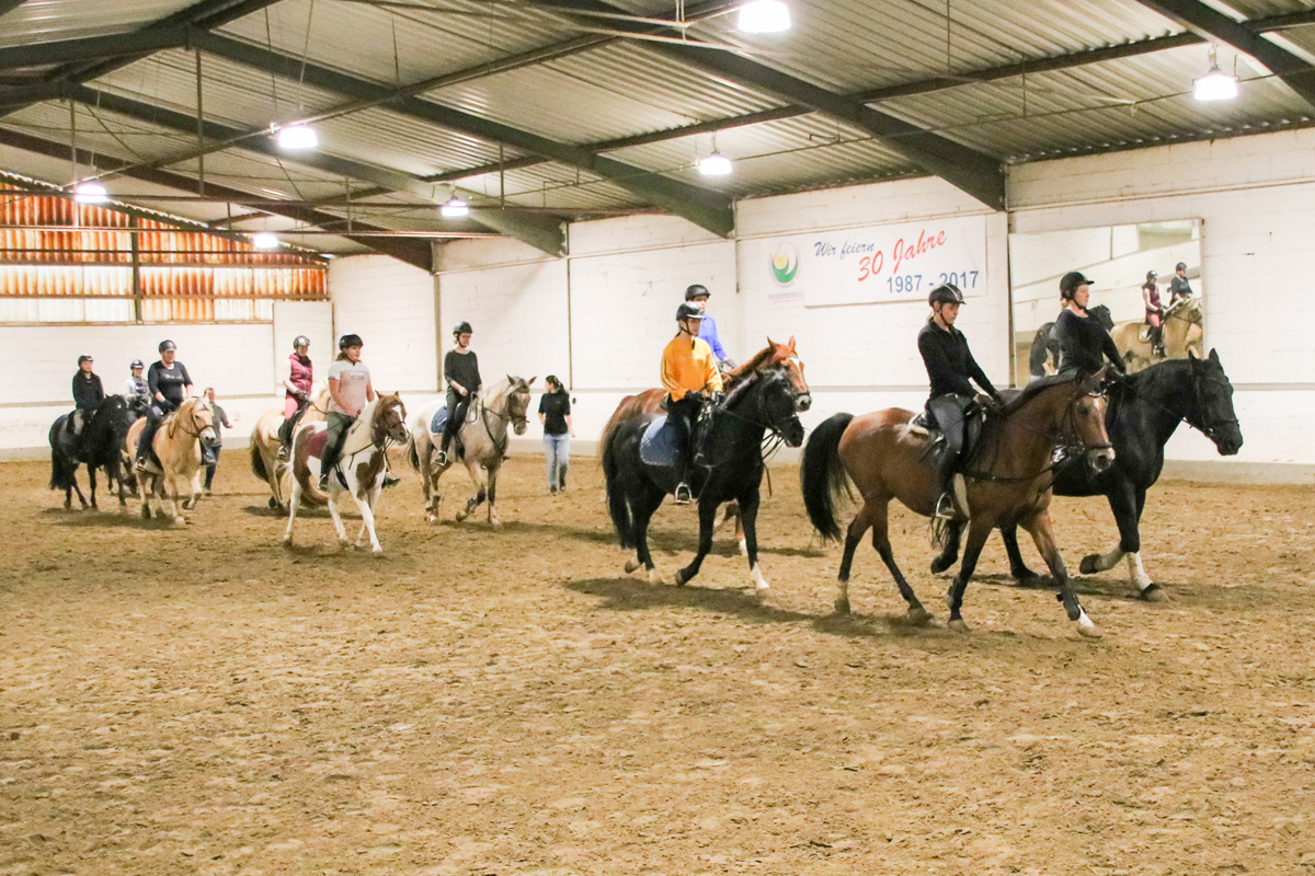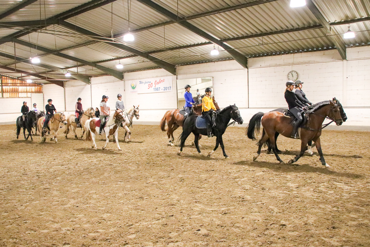 Danke an Alina, Aline, Angelika, Anna-Lena, Ardita, Finnja, Hannah, Kristin, Melanie und Rosemarie fürs Interesse an diesem ganz neuen Kursthema und das engagierte Mitmachen. Wir sind auch diesmal wieder ganz besonders stolz auf unsere großartigen Schulpferde, die das Abteillungsreiten in dieser Form auch nicht kennen und die in diesem Kurs in kurzer Zeit ebenfalls viel Neues lernen mussten - auch wenn es ihnen sicher geholfen hätte, die eine oder andere Übung noch ein paar Mal zu wiederholen, haben sie toll mitgemacht. Danke an Anoki, Cattinca, Cesar, Efenia, Emil, Fahira, Jolie, Oliver, Smilla und Vin. Ein ganz besonderes Dankeschön geht an Julia für den sehr gut und strukturiert vorbereiteten Kurs!