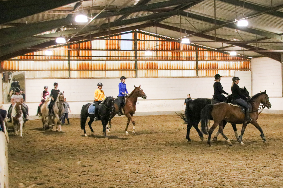 Für den letzten Lehrgang unseres Kursprogramms vor dem "Lockdown Light" besuchte uns eine Kursleiterin, die zum ersten Mal Unterricht in unserem Verein anbot: Gemeinsam mit Julia Winkelmann übten zehn Kursteilnehmer (und zehn Schulpferde!) das Quadrillereiten. In nur fünf Stunden wurde eine Quadrille entworfen, eingeübt und in Kleingruppen sowie zum Schluss sogar zu zehnt geritten.