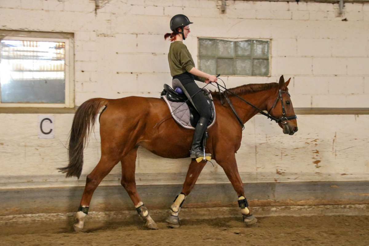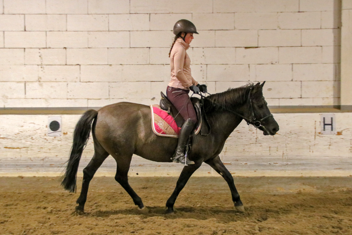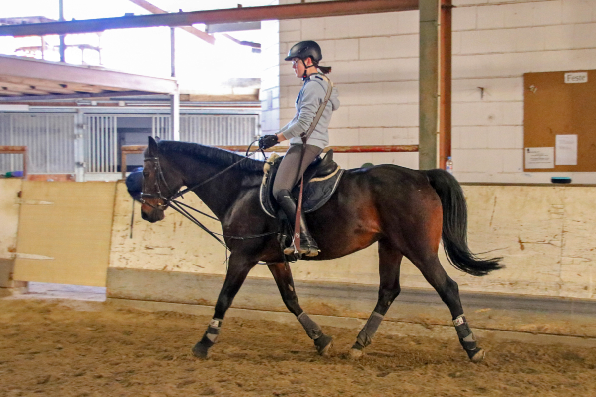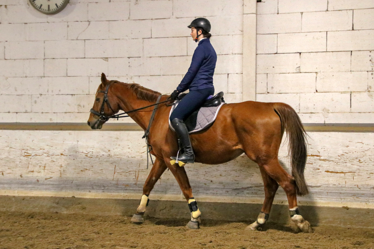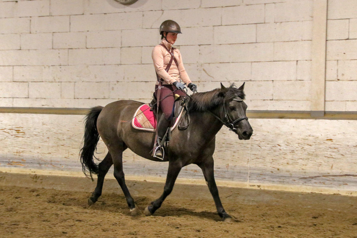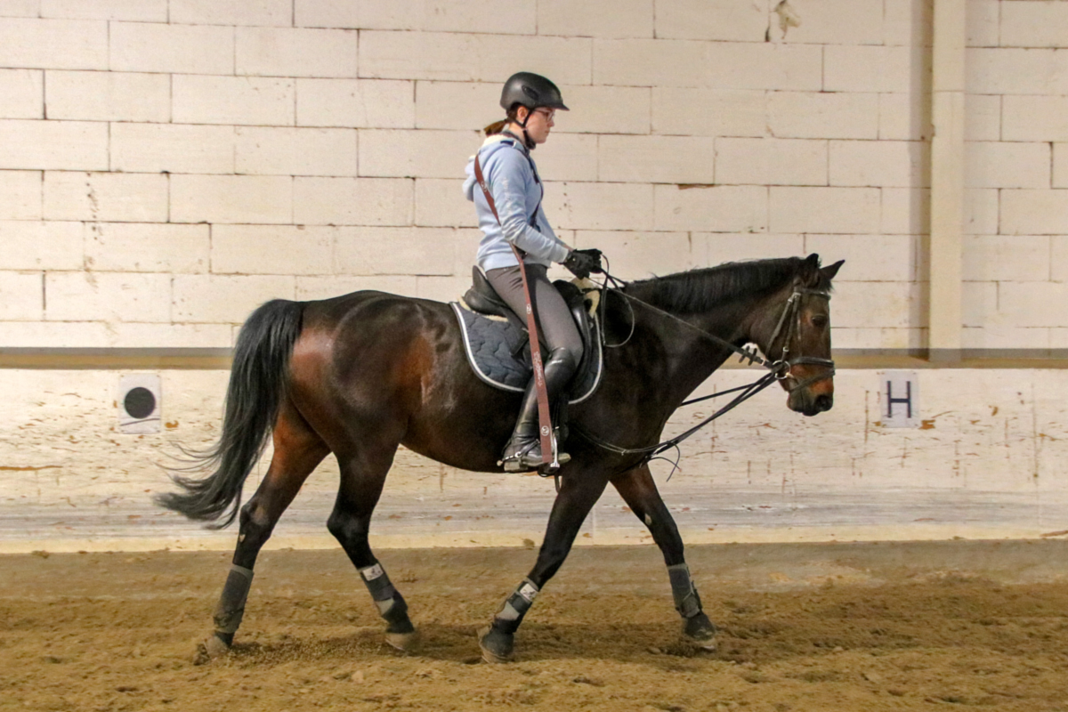 Wer etwas lernen will, muss also die Komfortzone verlassen - und das bedeutet, sich auch mal auf ein Pferd zu setzen, mit dem man nicht so gut klarkommt, das man nicht so gut kennt oder das eben einfach nicht das eigene Lieblingspferd ist, von dem man genau weiß, wie man am besten mit ihm umgeht. Da ist eine Lehrgangsteilnahme mit unseren Schulpferden natürlich ein Vorteil: Es gibt viele verschiedene Pferde, die unterschiedliche Bewegungsabläufe und verschiedene Charaktere haben - also ganz viele verschiedene Möglichkeiten, Neues zu lernen. Denn auch wenn man mit einem Pferd gut zurechtkommt, heißt das ja noch lange nicht, dass man grundsätzlich gut reitet.