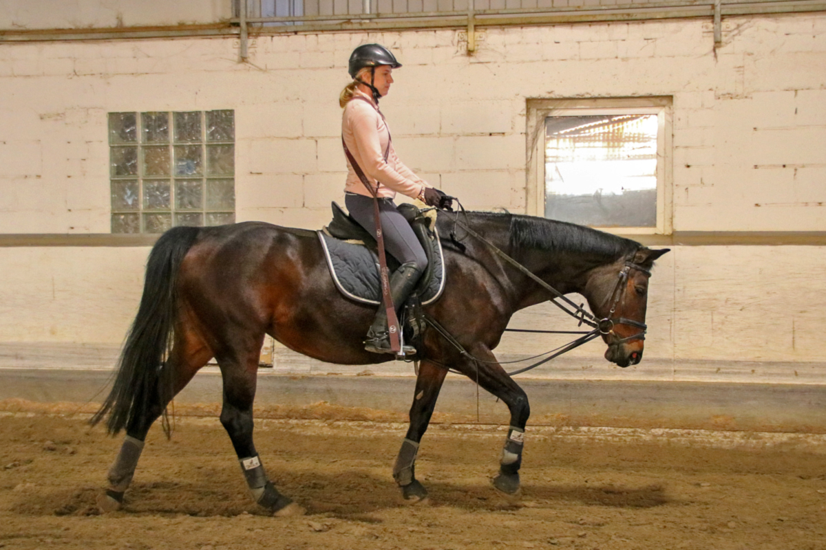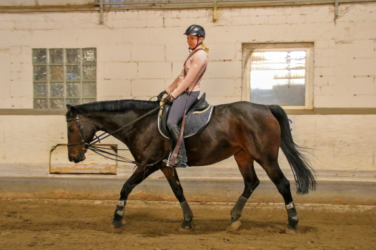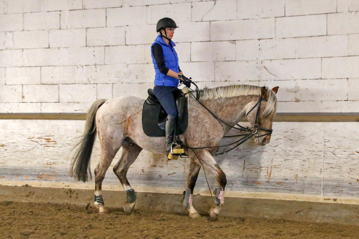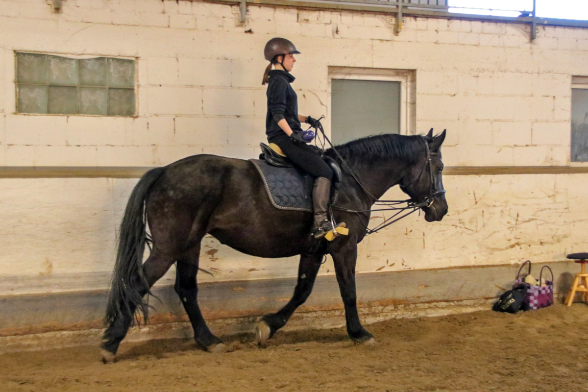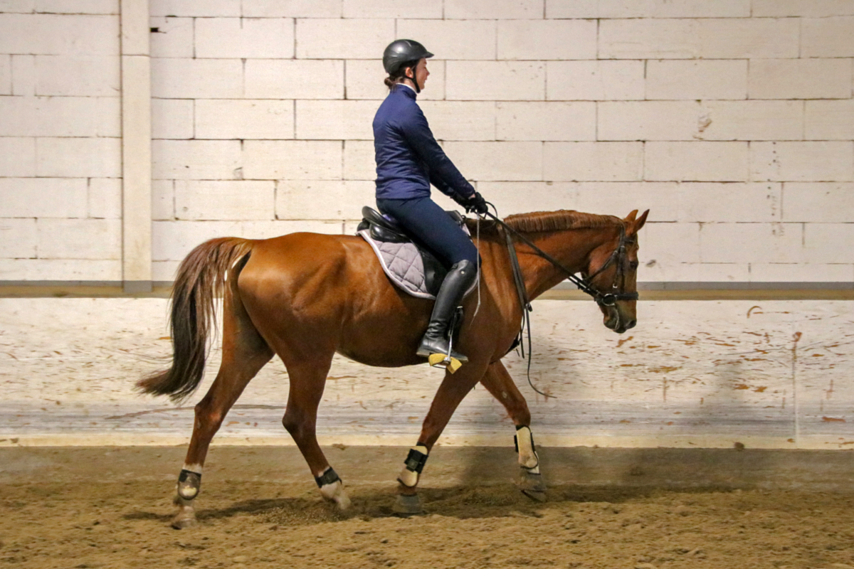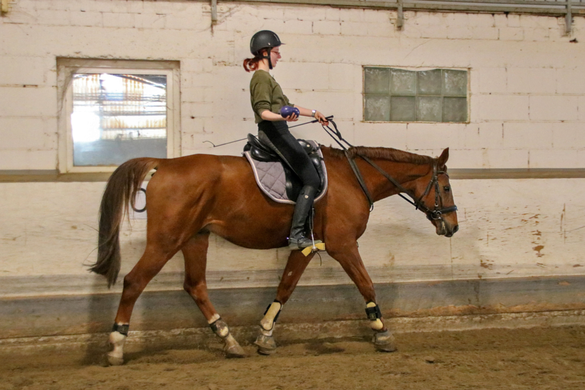 Dabei analysierte sie nicht nur den Sitz des Reiters, sondern auch die Bewegungen des Pferdes - und ging im darauf folgenden Unterricht dann zwar vor allem, aber nicht nur auf den Zweibeiner ein. Wieder einmal zeigte sich allerdings schnell, wie sehr ein guter Sitz die Bewegungen des Pferdes verbesserte - und wie die besseren Bewegungen den Reiter deutlich leichter sitzen ließen. Das ist ein klassisches Problem, vor dem gerade viele Reitanfänger stehen: Sie können ihren Sitz auf dem schaukelnden Pferderücken noch nicht gut koordinieren, was zu einer für das Pferd ungewohnten Gewichtsverteilung und falschen Reiterhilfen führt - das Pferd wiederum versteht dann nicht richtig, was der Reiter möchte, und hat Schwierigkeiten, sich auszubalancieren, locker zu laufen und den Reiter wirklich sitzen zu lassen. So haben gerade Einsteiger, die den richtigen Sitz noch lernen müssen, oft "erschwerte Bedingungen" auf dem Pferderücken.