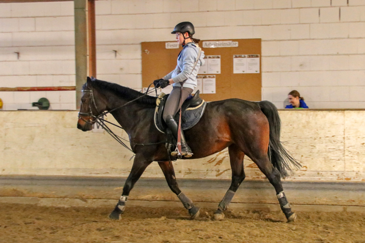 Deswegen freut es uns ganz besonders, dass wir auch in diesem Jahr noch einmal die ebenfalls sehr lehrreichen Halbtageskurse mit Anette anbieten können: Am 3. Juli besucht sie uns erneut. Die Sitzschulung als Halbtageskurs hatte sie im vergangenen Jahr erstmals bei uns angeboten - und auch davon waren die Teilnehmer so begeistert, dass wir in diesem Jahr nicht darauf verzichten wollen. Los geht's mit Übungen am Boden, besonders für eine bessere Hand- und Zügelhaltung, bevor in Kleingruppen in den Sattel gestiegen und auch hier noch einmal mit den Hilfsmitteln nach der Franklin-Methode der Sitz verbessert wird. Für den Halbtageskurs könnt ihr euch wahrscheinlich ab etwa Ende April anmelden.